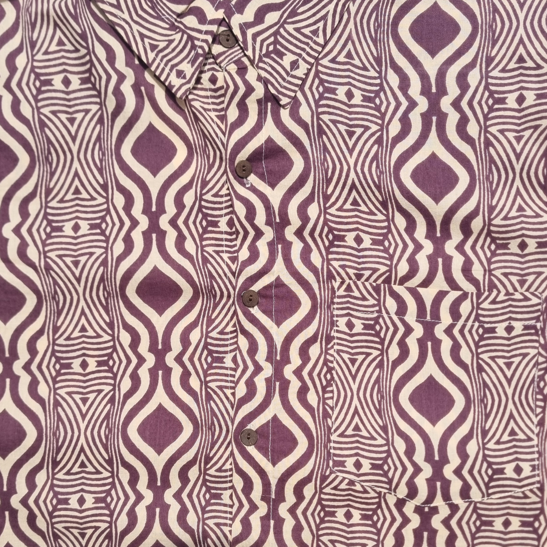 Camisa de rayón suave con estampado geométrico que evoca paisajes del desierto y ritmo ancestral. Textura fluida, corte relajado y estilo libre. Perfecta para quienes siguen su propio camino.