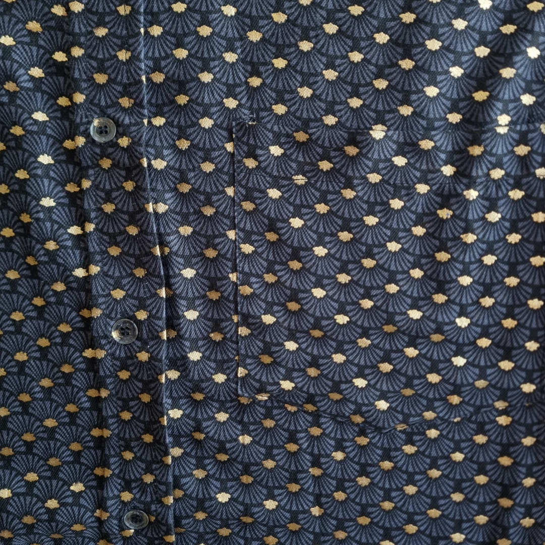 Camisa de Rayón Negro profundo con pequeños detalles que evocan luces doradas sobre el agua. Atemporal, liviana y con carácter tranquilo. Ideal para quienes aprecian la simpleza bien hecha.