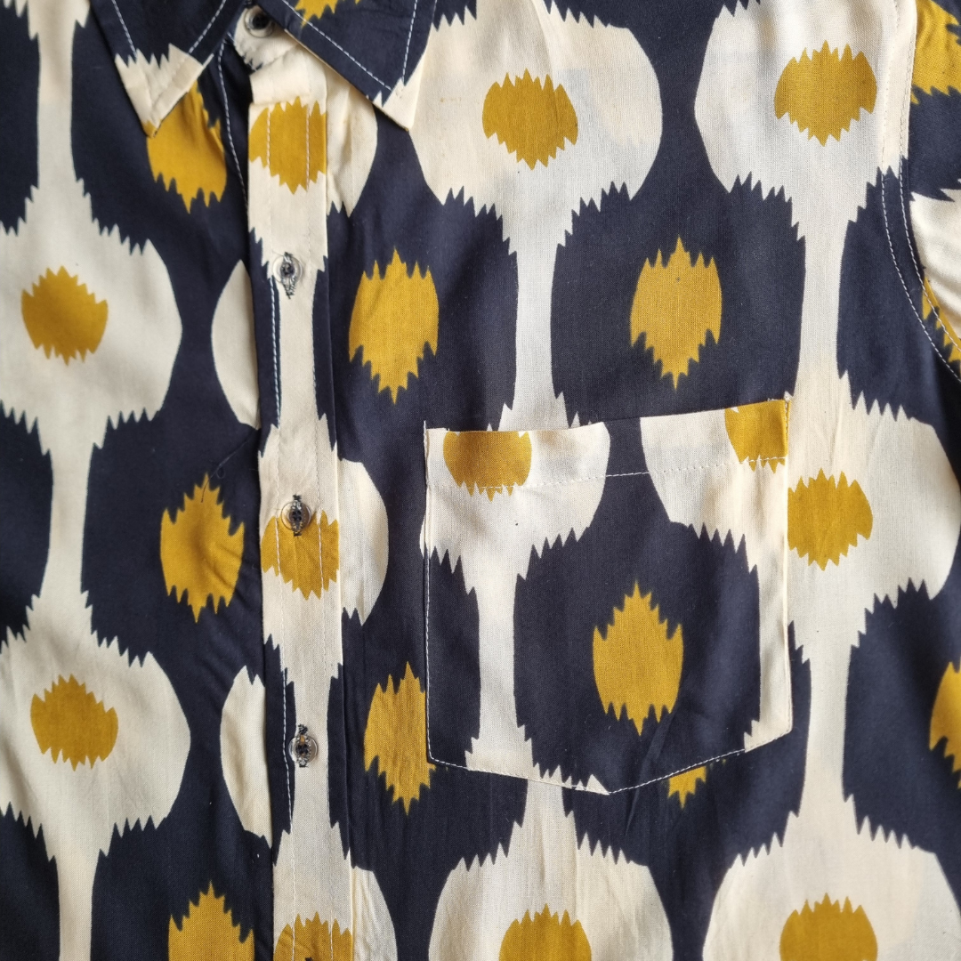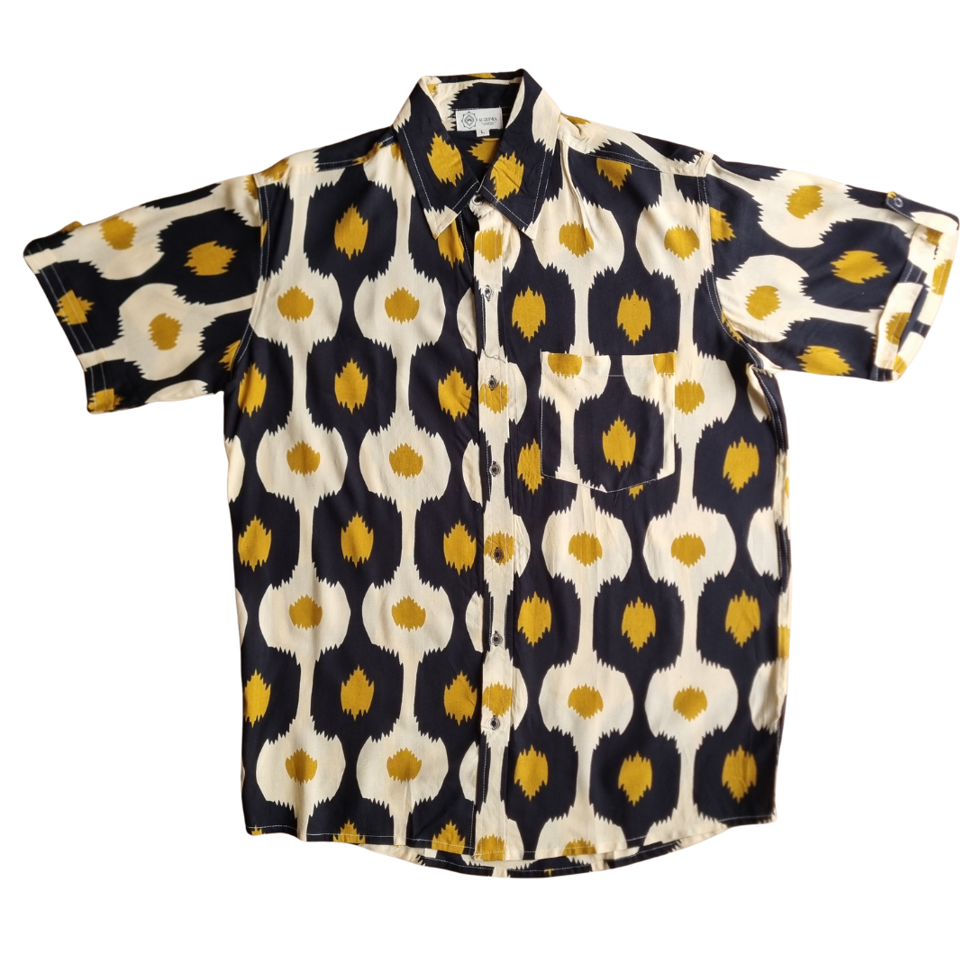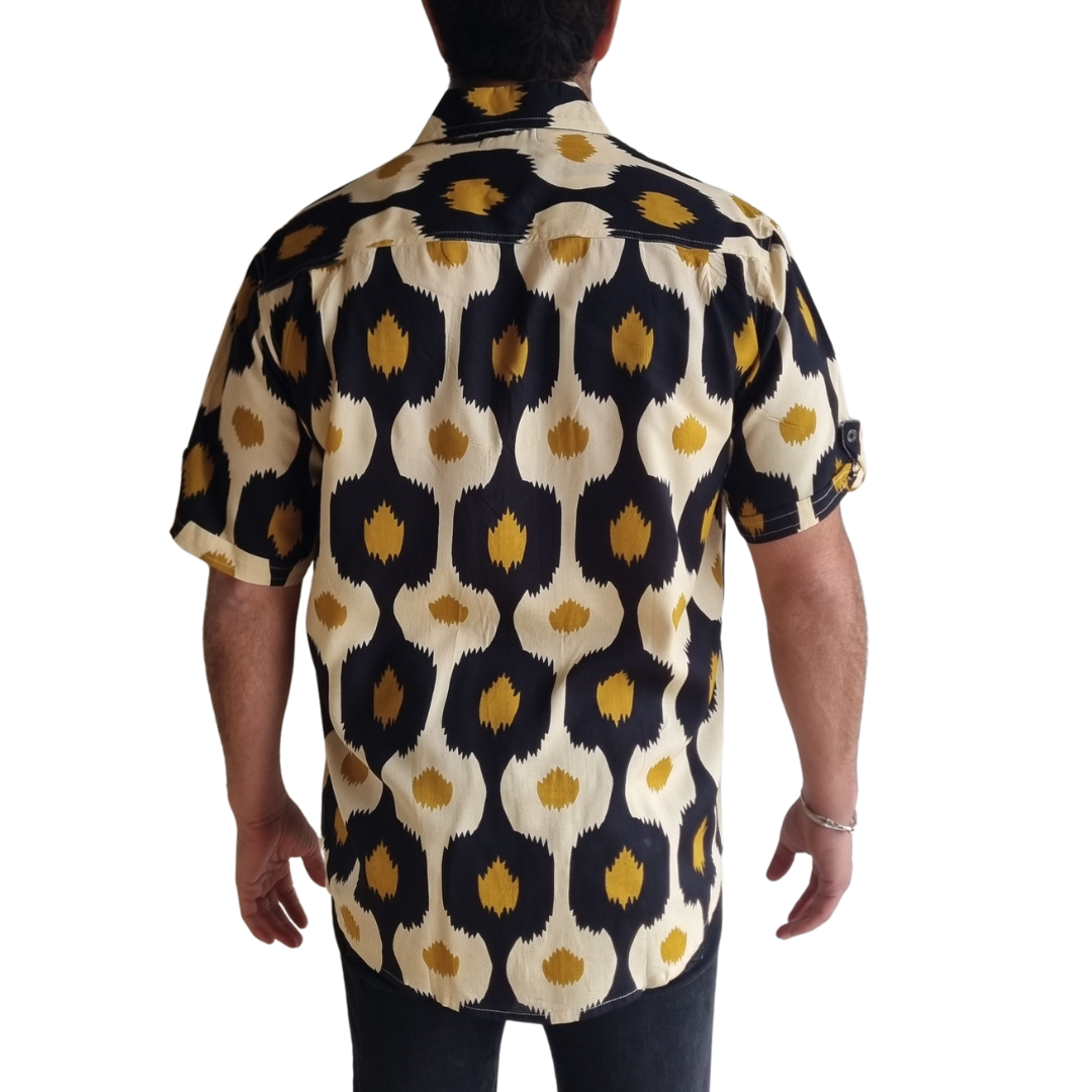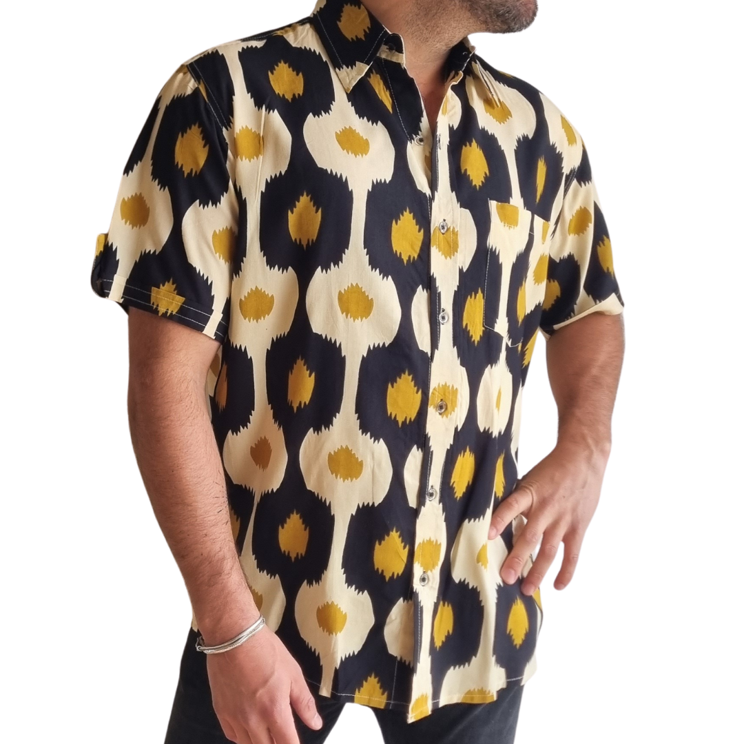 Camisa de Rayón en color negro, marfil y dorado con ritmo orgánico.